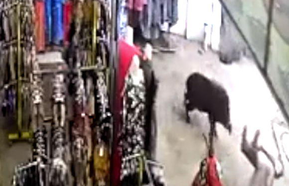 Επίθεση αγριογούρουνου σε πελάτες σε εμπορικό κέντρο …VIDEO