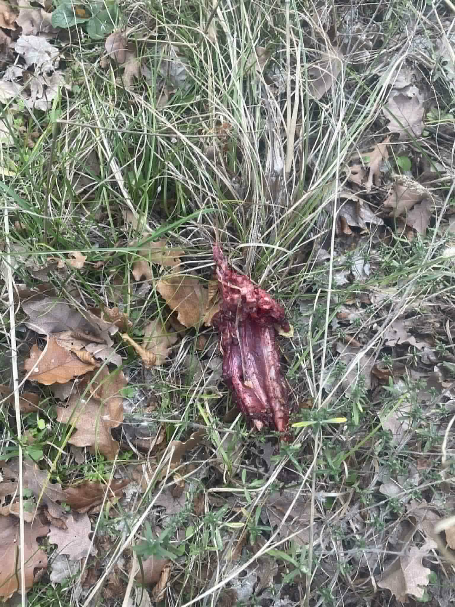 Στο σημείο που ήταν το σκυλί σταματημένο τόση ώρα βρήκα τα πίσω πόδια και ένα κομμάτι από τα πλευρά και στο άλλο σημείο που έτρεξε και σταμάτησε βρήκα το κεφάλι με το μπροστινό πόδι.