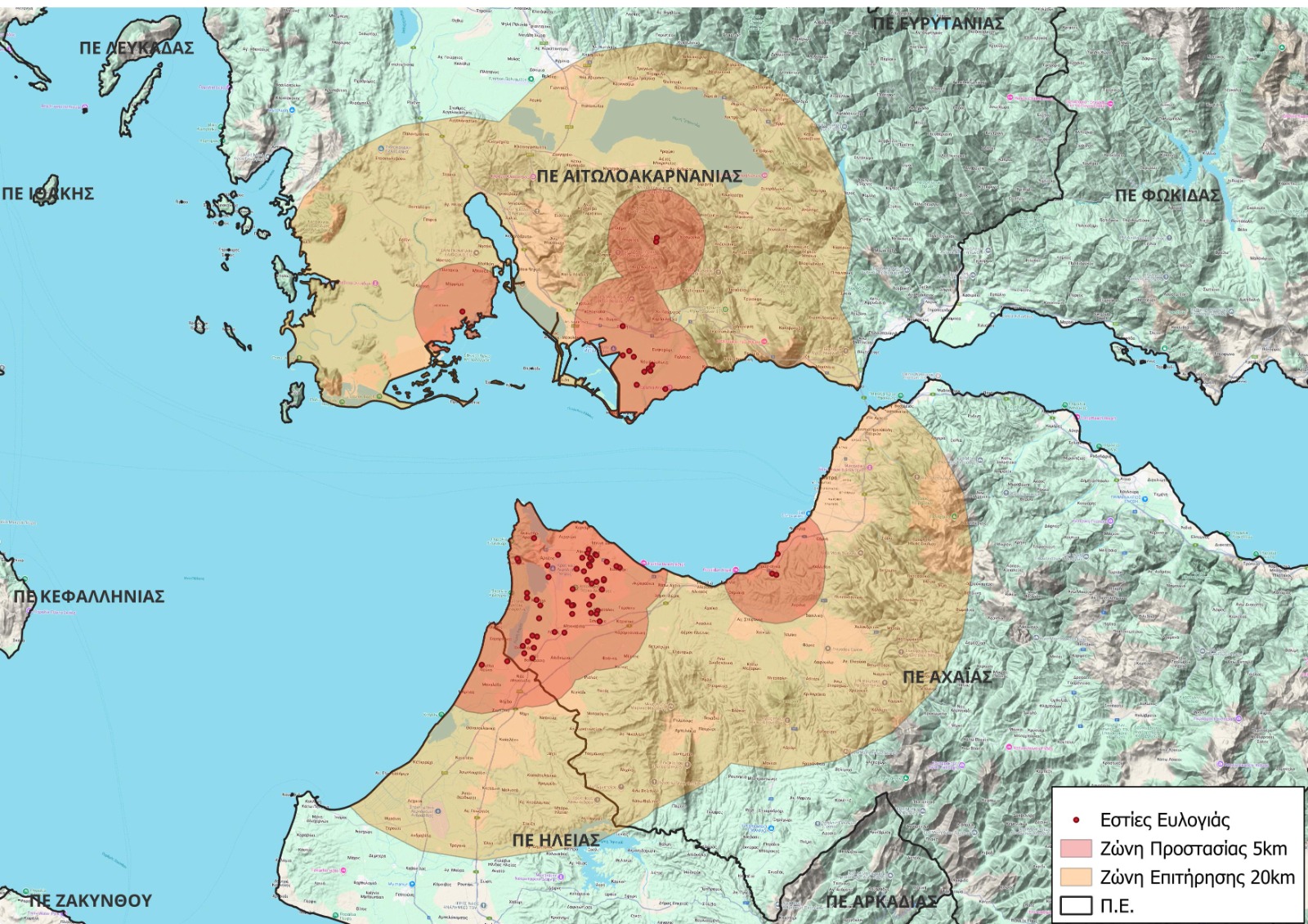 • Στην Αχαΐα η εμφάνιση νέων περιστατικών σηματοδοτεί την επέκταση της νόσου νοτιότερα, για πρώτη φορά σε τέτοια έκταση.