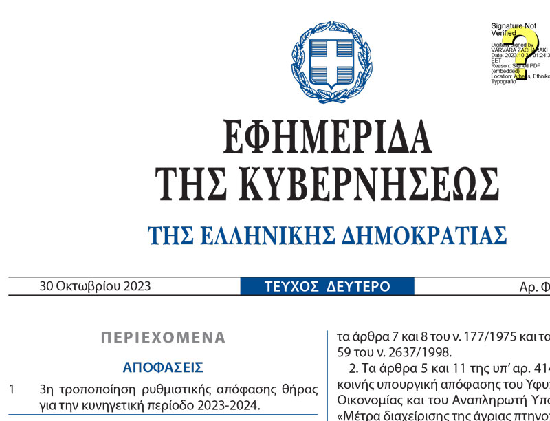 FEK-2023-Tefxos B-06244-downloaded -31_10_2023 (1)Το Δασαρχείο Αλεξανδρούπολης άμεσα εξέδωσε απόφαση βασιζόμενο στην απόφαση του υπουργού.