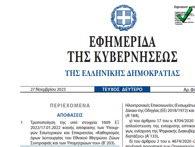 Αρχική » Grid with Sidebar » ΦΕΚ : Τροποποίηση και καθορισμός όρων λειτουργίας του Εθνικού Μητρώου Ζώων Συντροφιάς και των Υπομητρώων του