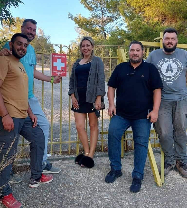 Τέλος τοποθετήσαμε ένα φαρμακείο έξω από το σύλλογο Κ.Δ.Η.Φ Α.Μ.Ε.Α. ένας Σύλλογος που κατά την άποψή μάς αξίζει να βοηθηθεί από όλους τους συμπολίτες μας για το μεγάλο έργο που προσφέρει . Έξω από τον σύλλογο, μας υποδέχθηκε με χαμόγελο η Πρόεδρος κα Giouli Kanari Kaliotsou και με χαρά αποδέχθηκε την προσφορά μας.