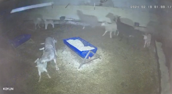 Κάμερα ασφαλείας στην Αλβανία καταγράφει την εισβολή λύκου εντός στάβλου και επίθεση στα πρόβατα.