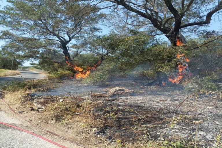 Μέχρι στιγμής έχει κάψει τέσσερα στρέμματα δάσους χωρίς ωστόσο να κινδυνεύουν ανθρώπινες ζωές οι οικισμοί στην γύρω περιοχή.