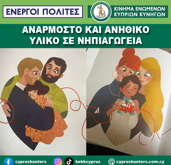 Οι «Ενεργοί Πολίτες- Κίνημα Ενωμένων Κυπρίων Κυνηγών», κατάφεραν να αποσύρουν βιβλίο με ανάρμοστο και ανήθικο υλικό σε νηπιαγωγεία.