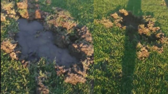 Αγριογούρουνο ή αγριογούρουνα, έσκαψαν σε πολλά σημεία το χόρτο, καταστρέφοντας το για 3η φορά μέσα σε 20 ημέρες.