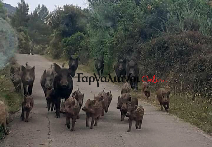 Μεσσηνία: Κοπάδι με περισσότερα από 20 “αγριογούρουνα” κάνει βόλτα κοντά στο Κορυφάσιο