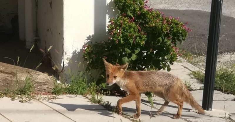 Η αλεπού έκανε τη βόλτα της στα πεζοδρόμια και τον δρόμο, πάνω από την Πυροσβεστική, σύμφωνα με το halkidikinews.gr.