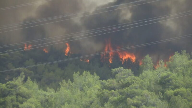 Μεγάλη αναζωπύρωση ανάμεσα σε Μέγαρα – Μάνδρα: Μήνυμα 112 σε 4 οικισμούς – «Εκκενώστε προς Οινόη»