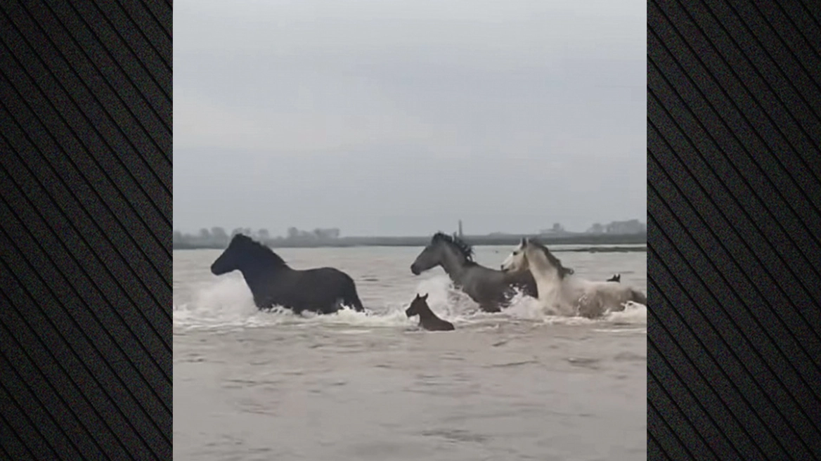 Μοναδικές εικόνες στο Δέλτα του Έβρου: Αγέλη άγριων αλόγων μέσα στα ορμητικά νερά…VIDEO