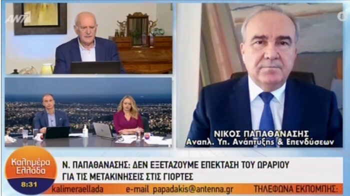 Ελαχιστοποίηση των μετακινήσεων μέχρι να έρθει το εμβόλιο, αυτλη ληταν η απάντηση του αναπληρωτή υπουργού Ανάπτυξης και Επενδύσεων στην ερώτηση για τις μετακινήσεις των κυνηγών στην εκπομπή του ANT1 “ΚΑΛΗΜΕΡΑ ΕΛΛΑΔΑ”.