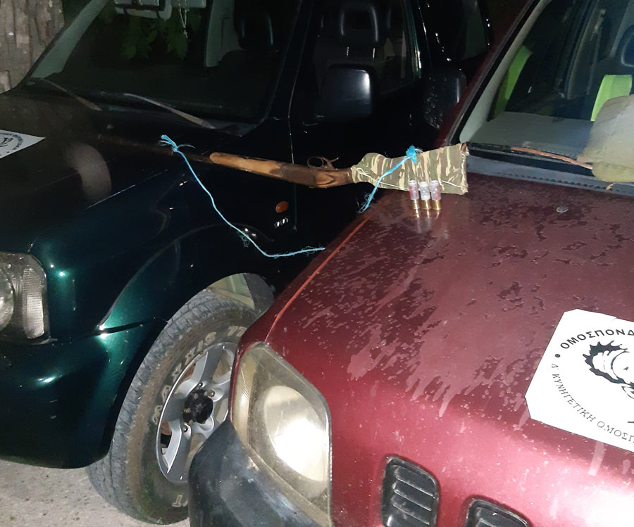 Ξημερώματα 10ης Αυγούστου δυο Ομοσπονδιακοί Θηροφύλακες της Δ’ Κυνηγετικής Ομοσπονδίας Στερεάς Ελλάδος, σε χωριό της δυτικής Ευρυτανίας αξιοποιώντας σχετικές πληροφορίες εντόπισαν άτομο να βρίσκεται σε καρτέρι με όπλο στα χέρια του δίπλα από χωράφι στο οποίο είχε ρίξει καλαμπόκι για προσέλκυση άγριων θηραμάτων.