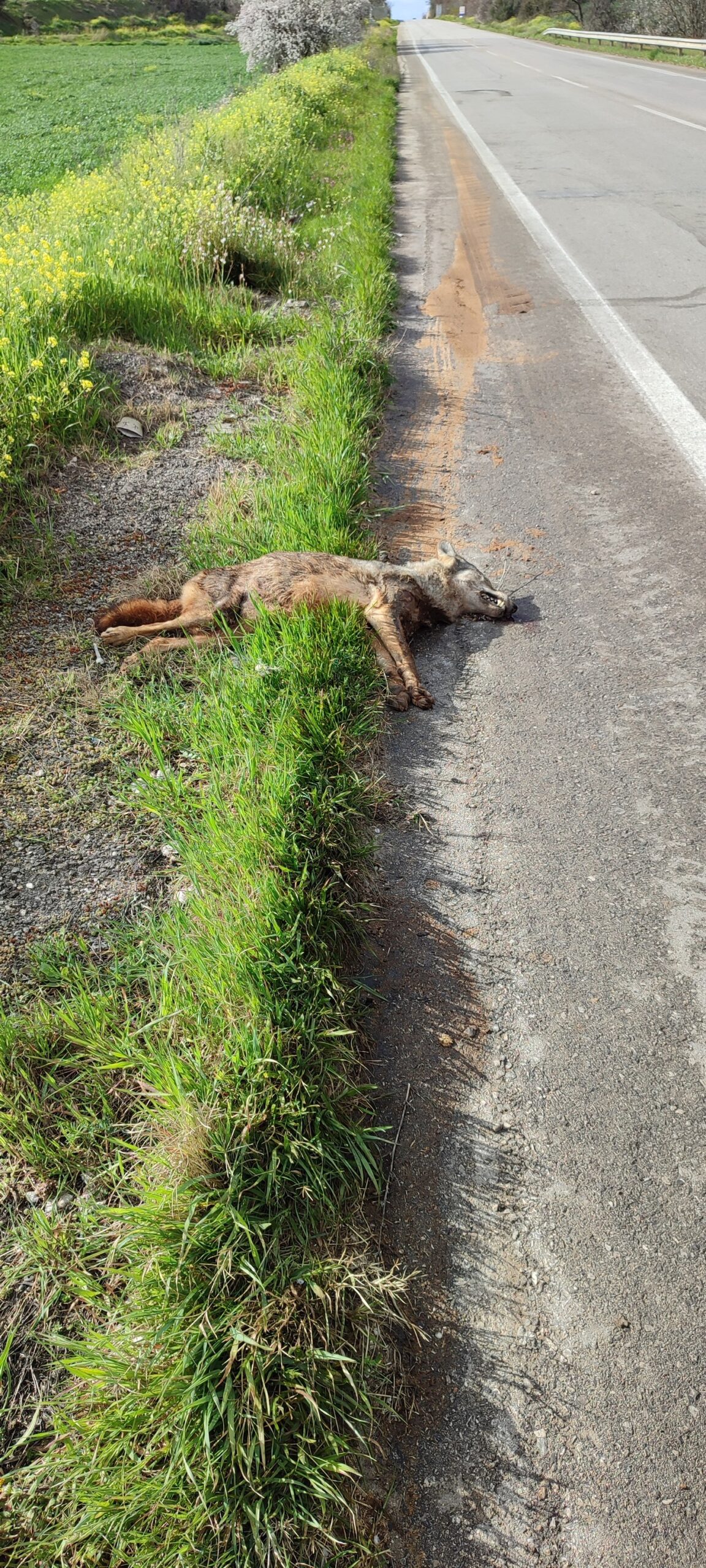 Το “σπάνιο” αγρίμι, ένας θηλυκός λύκος, εντοπίστηκε το πρωί της Τετάρτης 15/03 /23 από διερχομενο συνάδερφο κυνηγό και μέλος του Κ. Σ Θηβών, ο οποίος μας έστειλε τις παρακάτω φωτογραφίες και εφιστά την προσοχή στους συμπολίτες του καθώς τα περιστατικά εμφάνισης λύκων έχουν αυξηθεί σε ιδιαίτερα ανησυχητικό βαθμό στην ευρύτερη περιοχή, με ζημιές και απώλειες σε κτηνοτροφικά ζώα αλλά και σκυλιά.