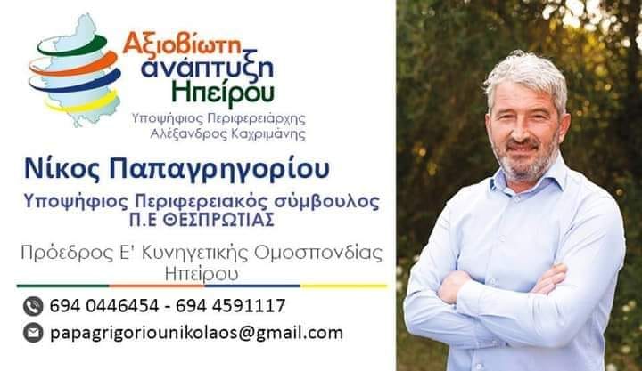 O Νίκος Παπαγρηγορίου γεννήθηκε στους Φιλιάτες Θεσπρωτίας και έλκει την καταγωγή του από τους Κουκουλιούς του Δήμου Σουλίου.