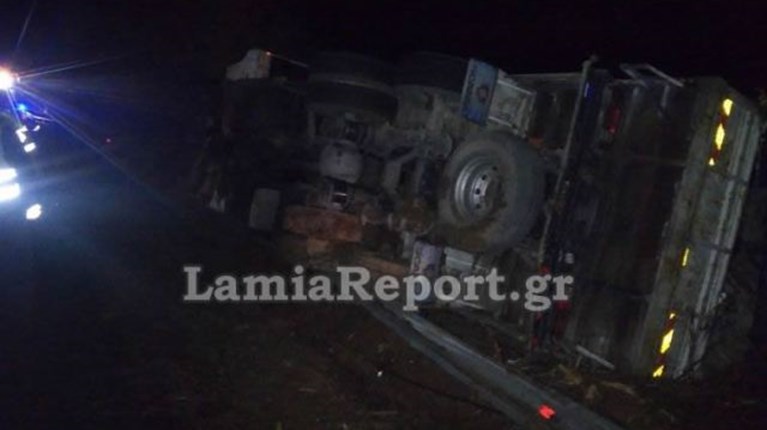 Το βαρύ όχημα βρέθηκε εκτός δρόμου τουμπαρισμένο στο πρανές, ευτυχώς χωρίς να τραυματιστεί ο οδηγός, ο οποίος είχε ξεκινήσει από το Βόλο με προορισμό την Αθήνα.