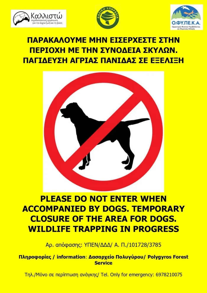 Προσοχή, θανάτωση ή τραυματισμός λύκων με όπλα, δόκανα, δηλητηριασμένα δολώματα ή αλλά μέσα, διώκεται ποινικώς!