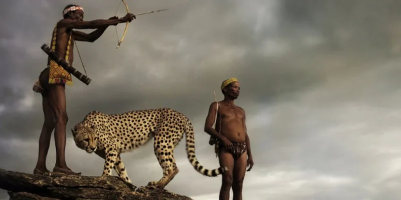 Ζουν σε απόλυτη αρμονία με την φύση. Στις φωτογραφίες του Jack Somerville, απαθανατίζονται δυο κυνηγοί που κυνηγούν παρέα με ένα αιλουροειδές. Το αρσενικό τσιτάχ που δεν έχει εξημερωθεί τους ακολουθεί στην προσπάθεια τους να βρουν τροφή.