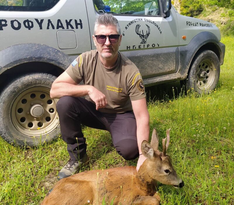 Περισυλλογή και περίθαλψη τραυματισμένου ζαρκαδιού από τους Ομοσπονδιακούς θηροφύλακες της ΠΕ Άρτας (κ.κ. Ν. Διγώνη και Θ. Γιακουβάκη) στην περιοχή Κάψαλα – Σκαρπάρι, μεταξύ Ν. Άρτας & Τρικάλων.