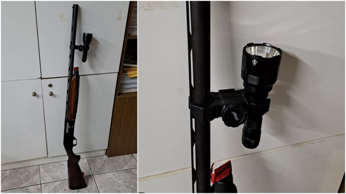 Όπως διαπιστώθηκε, όχημα φώτιζε στους παρακείμενους αγρούς. Οι ελεγκτές ακινητοποίησαν το όχημα και στον έλεγχο που έγινε βρέθηκε κυνηγετική καραμπίνα γεμάτη, με αυτοσχέδια βάση προβολέα (φακού).