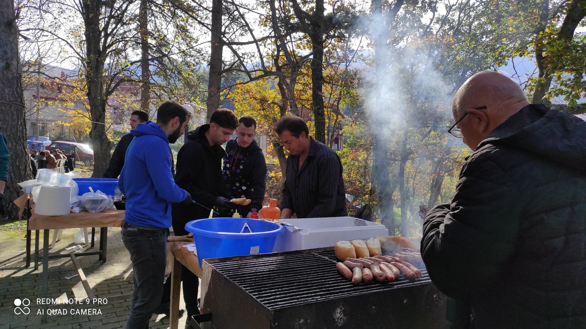 Εδέσματα με επίκεντρο το αγριογούρουνο, λουκάνικα, και άφθονο κρασί καθώς και χορός με παραδοσιακή μουσική από τους Γιάννη Γαλίτη και Νίκο Αλαΐτση.