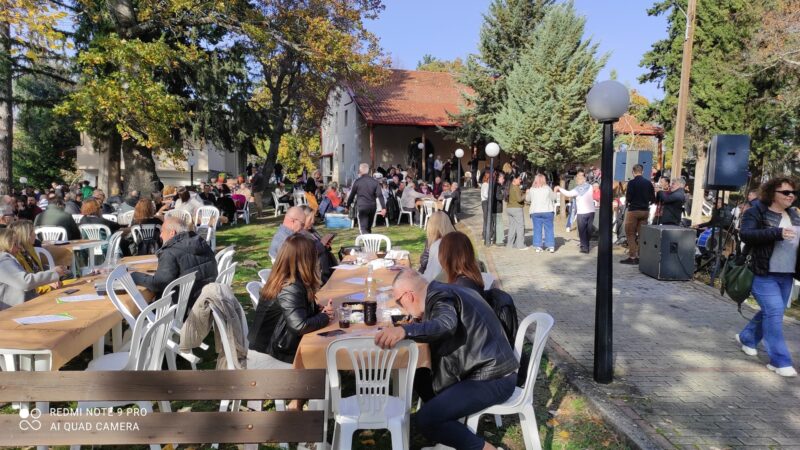 Εδέσματα με επίκεντρο το αγριογούρουνο, λουκάνικα, και άφθονο κρασί καθώς και χορός με παραδοσιακή μουσική από τους Γιάννη Γαλίτη και Νίκο Αλαΐτση.