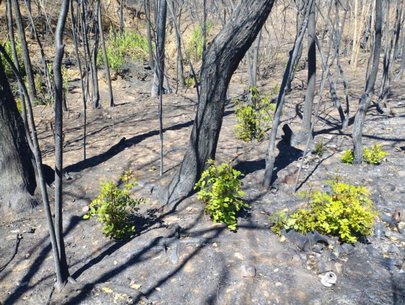 Άλλωστε σύμφωνα και με τους ειδικούς, αυτή είναι η φυσική εξέλιξη μετά από μία πυρκαγιά· το δάσος προσπαθεί σιγά-σιγά να αναγεννηθεί από τις στάχτες του.