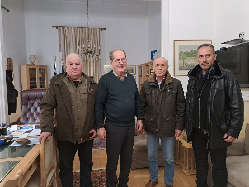 Ο πρόεδρος της Κυνηγετικής Ομοσπονδίας Πελοποννήσου κος Γραμματσούλιας Παναγιώτης και ο Γεν. Γραμματέας κος Παπαδάτος Ανδρέας επισκέφθηκαν την Τετάρτη 8 Φεβρουαρίου 2023 τον Περιφερειάρχη Πελοποννήσου κο Νίκα Παναγιώτη προκειμένου να συζητηθούν θέματα που αφορούν το κυνήγι και γενικότερα την συνεργασία για την ανάδειξη και την προστασία του φυσικού περιβάλλοντος της περιοχής της Πελοποννήσου. Στην συνάντηση παραβρέθηκε και ο πρόεδρος του Κυνηγετικού Συλλόγου Τρίπολης κος Κούλης Κωνσταντίνος.
