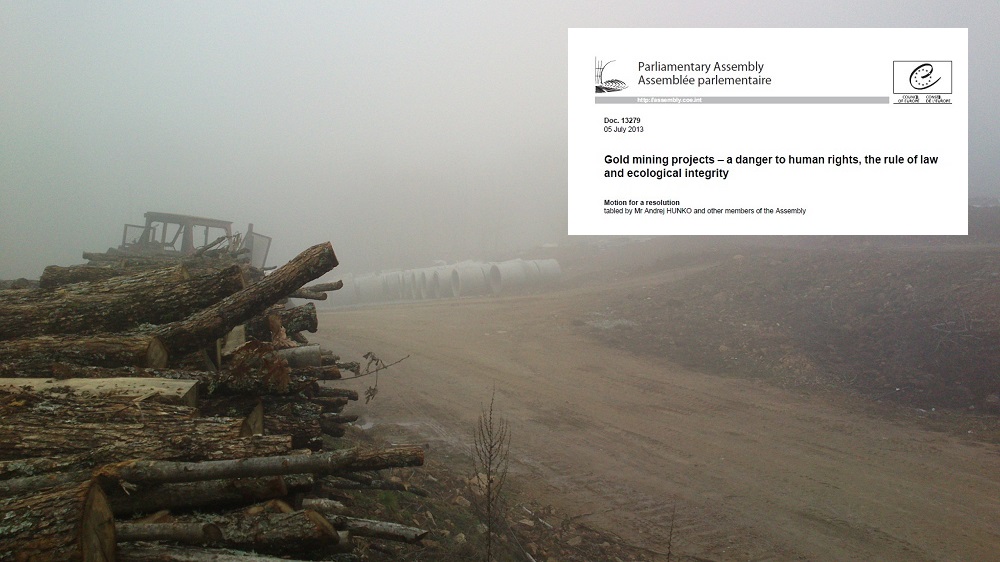 Με ψήφισμά του, το οποίο υπογράφεται από 21 βουλευτές το Συμβούλιο της Ευρώπης, στο οποίο συμμετέχουν 47 κράτη, μεταξύ των οποίων και η Ελλάδα, επιβεβαιώνει όσα κατά καιρούς έχει γράψει το HOT DOC και του koutipandoras.gr για το περιβαλλοντικό έγκλημα που συντελείτε στην ανατολική Χαλκιδική, εκεί όπου δραστηριοποιείται η εταιρία Ελληνικός Χρυσός.