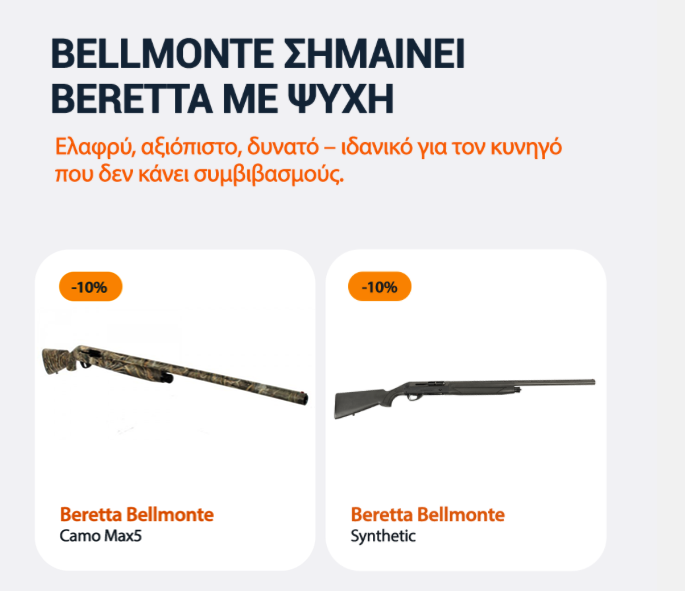 H Beretta Hellas φέρνει ειδικές προσφορές σε όλα τα Beretta Bellmonte, από την κλασική Bellmonte I μέχρι την μοντέρνα Bellmonte II και την τεχνολογικά αναβαθμισμένη Bellmonte III.
