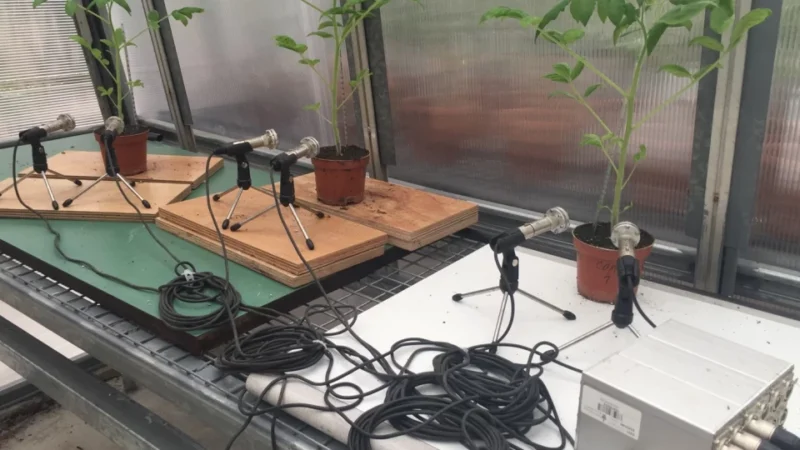 Οι ερευνητές χρησιμοποίησαν μικρόφωνα για να καταγράψουν υγιή και αγχωμένα φυτά καπνού και ντομάτας, πρώτα σε έναν ηχομονωμένο ακουστικό θάλαμο και στη συνέχεια σε ένα πιο θορυβώδες περιβάλλον θερμοκηπίου. Στρέσαραν τα φυτά με δύο τρόπους: με το να μην τα ποτίζουν για αρκετές ημέρες και να κόβουν τους βλαστούς τους. Αφού ηχογράφησαν τα φυτά, οι ερευνητές εκπαίδευσαν έναν αλγόριθμο μηχανικής μάθησης για να διαφοροποιήσει τα φυτά που δεν έχουν υποστεί πίεση με τα διψασμένα και τα κομμένα φυτά.