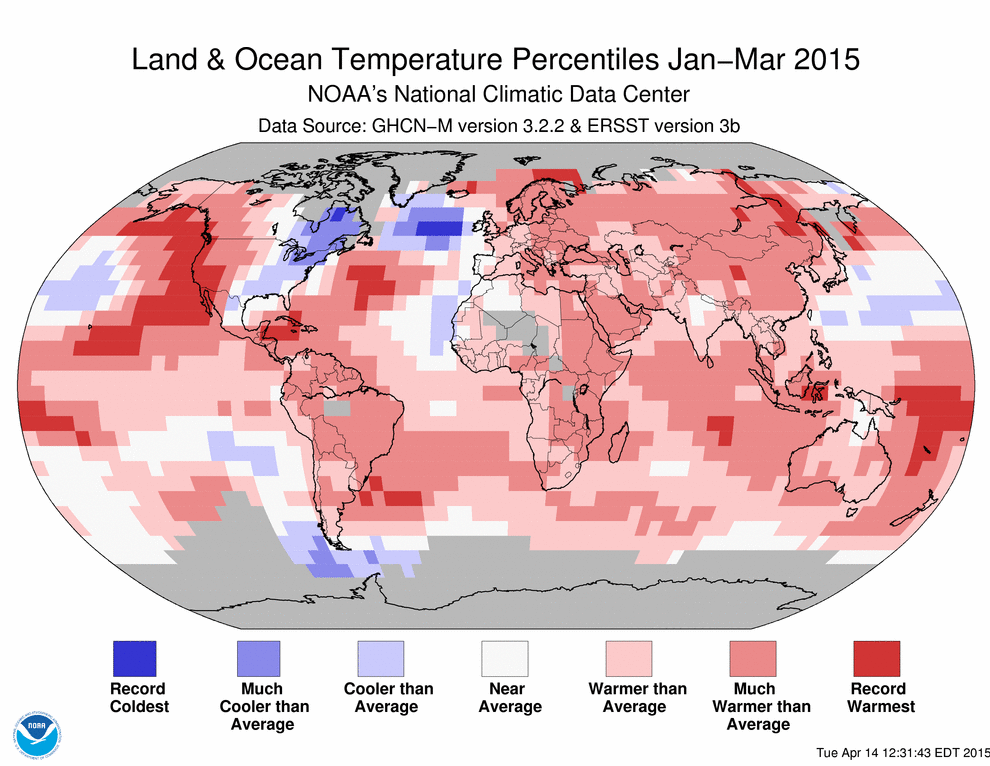 Τα επίσημα στοιχεία της NOAA δείχνουν ότι ο Μάιος του 2015 ήταν μακράν ο θερμότερος μήνας στην ιστορία, όπως και το πρώτο πεντάμηνο του 2015 συνολικά.