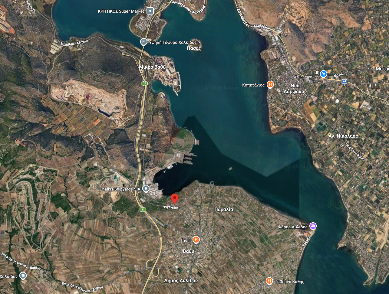 Το στοιχείο που κάνει το συμβάν να ξεχωρίζει είναι η γεωγραφία του. Η λύκαινα εντοπίστηκε μόλις μερικές εκατοντάδες μέτρα από την Υψηλή Γέφυρα της Χαλκίδας και σε σημείο όπου η απόσταση από τη θάλασσα είναι περίπου 240 μέτρα. Δηλαδή, μιλάμε για ένα τροχαίο σχεδόν «στο κατώφλι» ενός από τα πιο πολυσύχναστα περάσματα της περιοχής, σε περιβάλλον έντονα ανθρωπογενές.