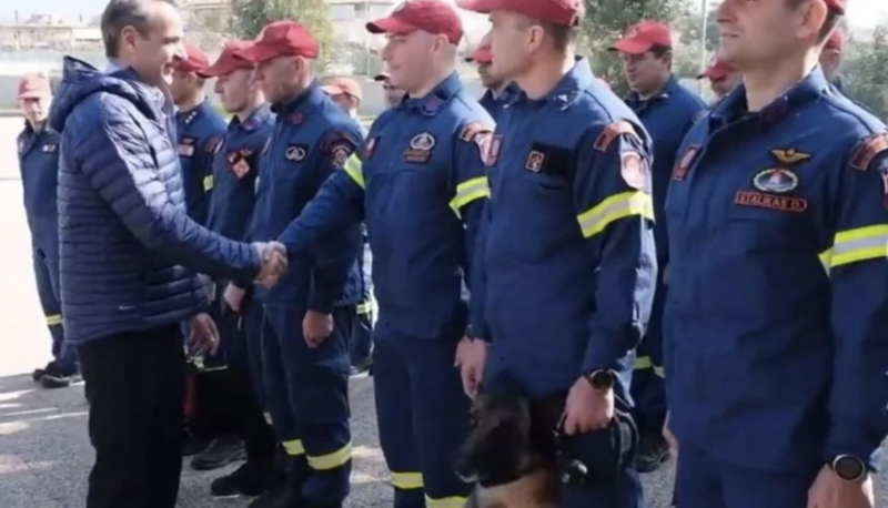Με αντίστοιχο τρόπο αντέδρασε και ο εκπαιδευμένος σκύλος της ομάδας διάσωσης της ΕΜΑΚ που επέστρεψε από την Τουρκία, μόλις είδε να τον πλησιάζει ο Κυριάκος Μητσοτάκης, ο οποίος πήγε σήμερα να συγχαρεί και να ευχαριστήσει τους διασώστες.