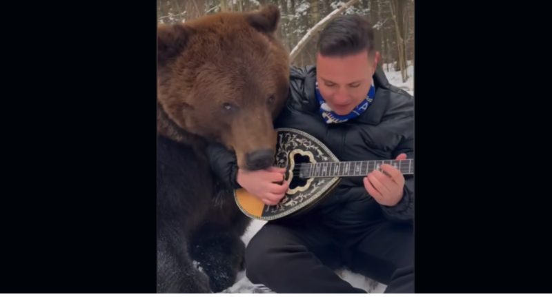 Έλληνας μουσικός που ζει και εργάζεται στη Ρωσία έγινε viral στο διαδίκτυο επειδή έπαιξε μπουζούκι σχεδόν αγκαλιά με μια αρκούδα!