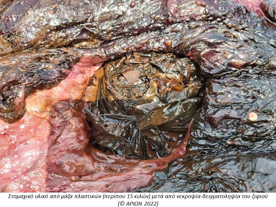 «Δεν είναι σπάνιος ο θάνατος των ζιφιών, όπως και άλλων κητωδών από την κατάποση πλαστικών, η οποία έχει τόσο οξείες και θανατηφόρες όσο και μακροχρόνιες επιβλαβείς επιπτώσεις για την υγεία τους. Στη συγκεκριμένη περίπτωση η μεγάλη ποσότητα πλαστικών που βρέθηκε στα στομάχια του κήτους, δεν του επέτρεπε να τραφεί σωστά με κατάληξη την καχεξία και τον θάνατο του» ανέφερε μετά την ολοκλήρωση της νεκροψίας-νεκροτομής η κ. Κομνηνού.